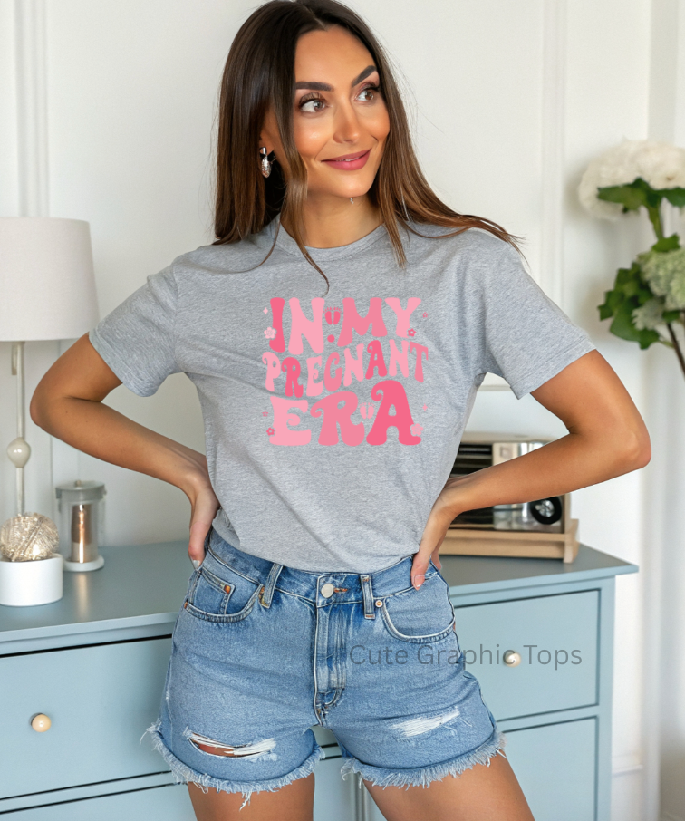 Enjoy your pregnancy with the playful "In My Pregnant Era" tee made from soft cotton by Gildan. This comfy shirt offers a gentle touch on your skin while celebrating your unique journey with a fun and confident style. Perfect for everyday wear, it keeps you cozy and cheerful throughout your special era.