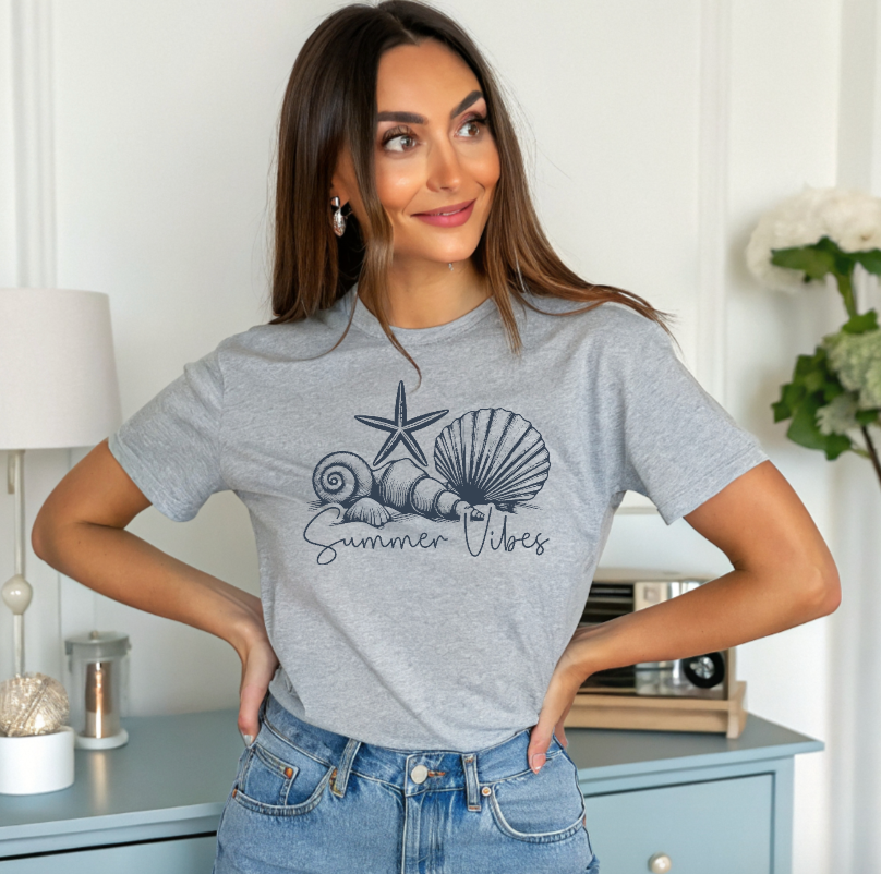 Embrace the sunny days with our Summer Vibe tee! Lightweight and breezy, it’s perfect for beach trips, picnics, or just soaking up the sun. Let your outfit radiate fun and good times all season long.